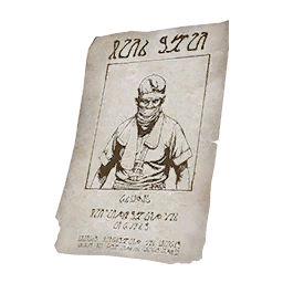 Ein Kopfgeldanzeige für einen Verbrecher namens Alessio. Von einem Laternenpfahl in der Stadt Hernand gesammelt.